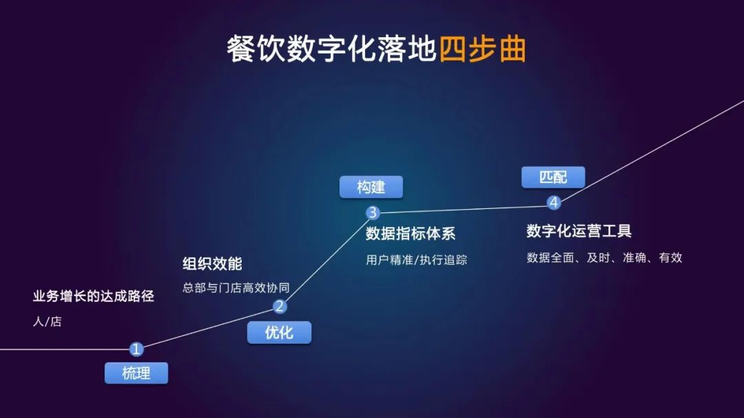 總結(jié)下來,餐飲數(shù)字化的落地,可以分為4步: