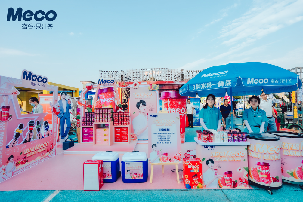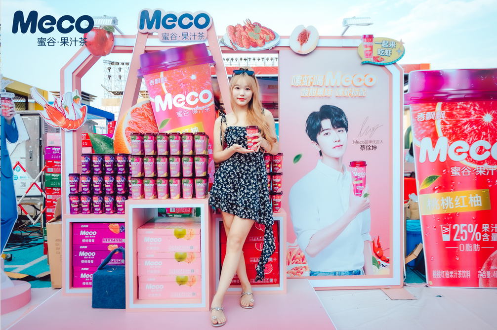 不是只有跨界才是茶飲賽道新的突破口,也不是只有聯(lián)名才是茶飲品牌新的流量密碼。今年夏天,Meco果汁茶入駐參與了6/13-6/18在江蘇淮安盱眙舉辦的“盱眙國(guó)際龍蝦節(jié)”,將“嗦蝦喝Meco”的新體驗(yàn)帶到線下展區(qū)內(nèi)外現(xiàn)場(chǎng),深挖特色餐飲銷售機(jī)會(huì),建立特色餐飲與產(chǎn)品關(guān)聯(lián)度,以實(shí)現(xiàn)全方位、多角度餐飲樣板街的打造,直接引爆整個(gè)活動(dòng)。