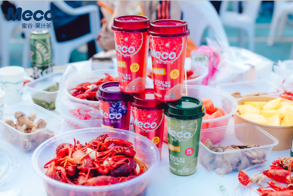 解膩解辣的酸甜口味果汁茶飲,相較于其他飲品更有優(yōu)勢(shì)、更顯產(chǎn)品力。三種水果一杯茶的Meco,更是讓消費(fèi)者享受小龍蝦美味同時(shí)解鎖了多種鮮果滋味。
