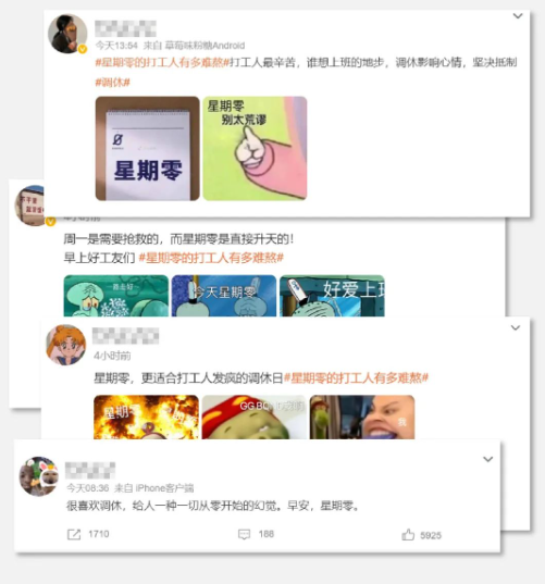(網(wǎng)友在星期零相關(guān)話題下吐槽的微博)